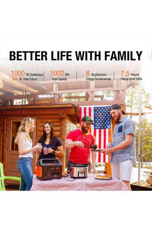 Préparez-vous à alimenter vos appareils n'importe où - avec une puissante batterie au lithium de 1002 Wh et une puissance de sortie continue de 1000 W, gérant des surtensions allant jusqu'à 2000 W.
