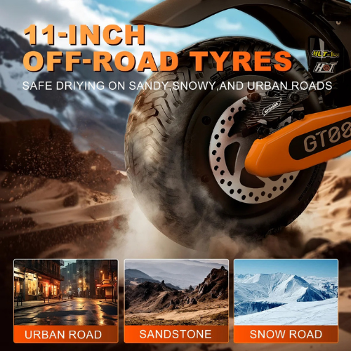 Experience explosive acceleration and unstoppable climbing power with dual 2800W brushless motors, producing a combined 5600W of raw output. Tackle steep hills and rugged terrain with ease, while 11-inch off-road vacuum tires deliver superior grip and stability on any surface.