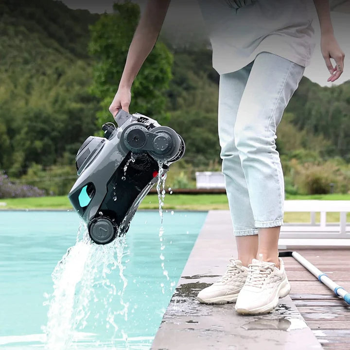 Ce puissant robot nettoyeur de piscine est compact, sans fil et conçu pour une utilisation sans effort. Il offre un nettoyage en profondeur, une navigation intelligente et des résultats rapides, sans tracas. Son fonctionnement sans fil assure une manipulation simple et sûre. Il nettoie le sol, les parois et les lignes d'eau , et fonctionne avec un moteur silencieux et performant qui filtre jusqu'à 71 gallons d'eau par minute .